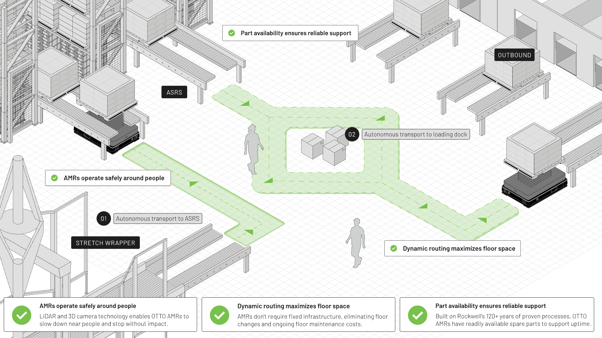 Stretch-wrapper to ASRS to outbound is just one example of where AMRs can deliver measurable impact on the plant floor. To learn more and explore two additional high-value consumer goods workflows, join our webinar on March 19 at 1:00 p.m. ET.